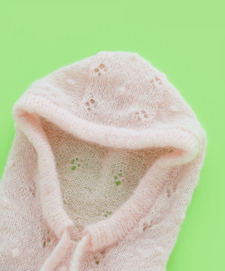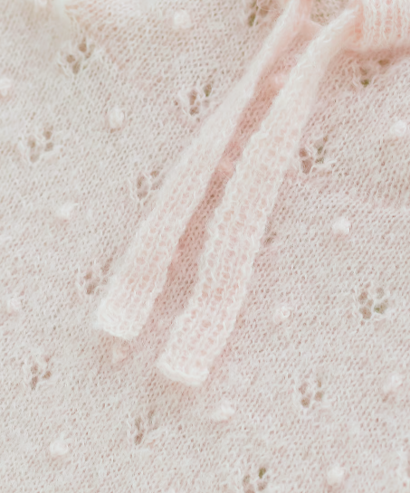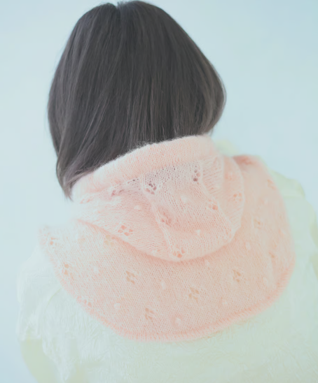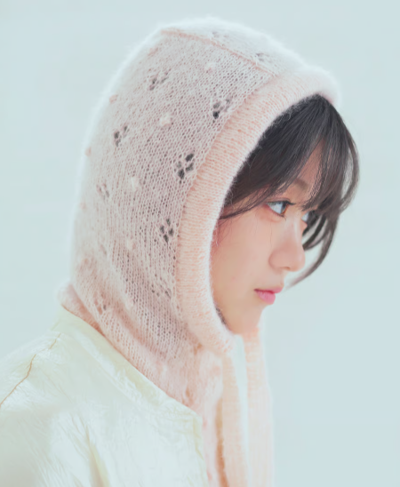 보송보송 모헤어로 비침무늬와 방울이 귀엽게 자리잡은 훼이크(?)후드에요^^
