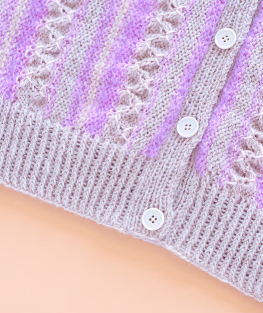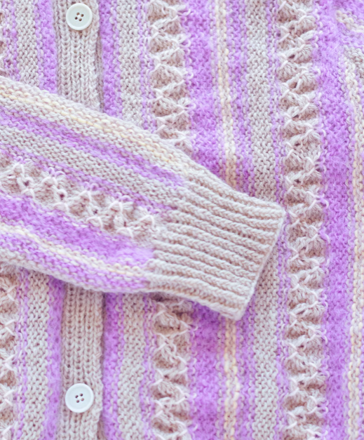 4가지 실을 가로 방향으로 떠서 이어주는 카디건 입니다.
