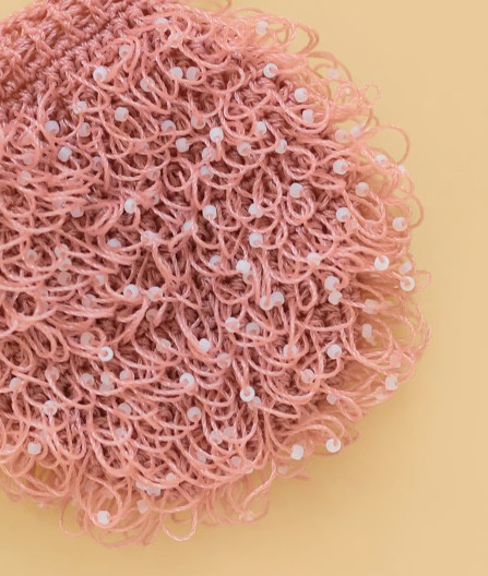 링 무늬 뜨기로 비즈를 엮어 뜨는 기법입니다.