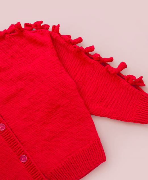 어깨부터 소매에 걸쳐 쭉 늘어선 리본이 포인트에요.