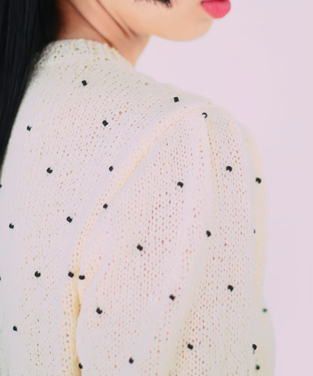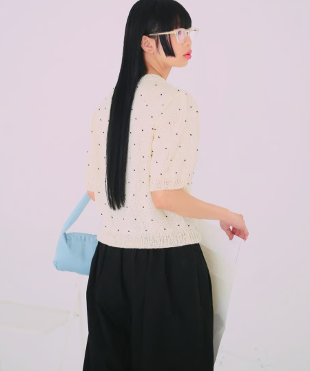 동글동글한 실루엣이 귀여울 퍼프 소매 니트 너무 귀엽죠? 거기에 비즈 도트라니! 뜨는 재미도 있을 것 같아요~