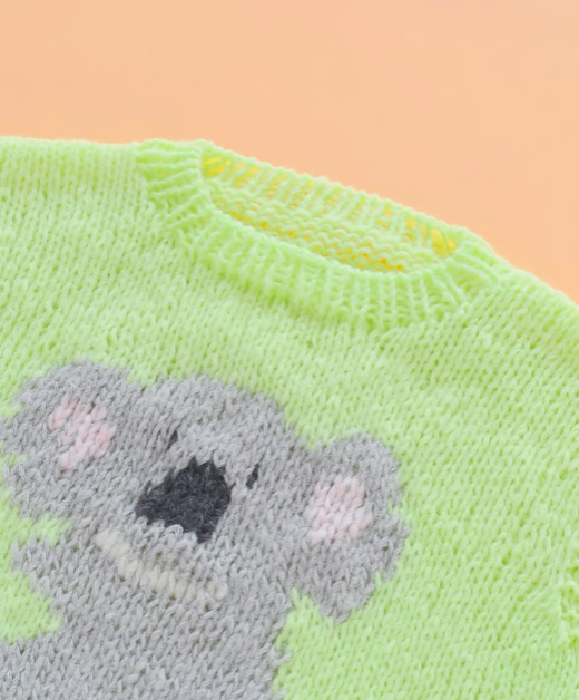 배색의 코알라 무늬를 뜨고 얼굴은 자수로 꾸며줍니다.