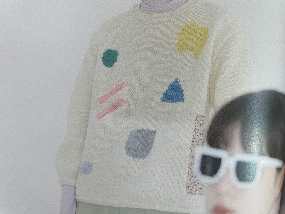 베이직한 바탕 컬러에 산뜻한 조각들의 귀여운 배열이 사랑스러운 스웨터에요 : )
