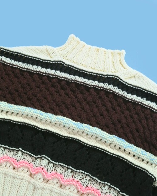 오픈 워크 풀오버 - 컬러풀(일본어 차트 도안 포함)