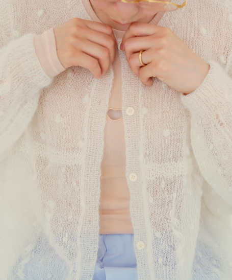 고품질의 키트 모헤어로 뜬, 매끄러운 촉감의 카이건입니다.