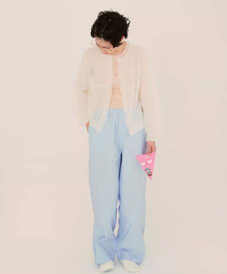 비치는 느낌이 있어서 진한 상의와 조합하면 무늬가 더 예뻐보여요^^