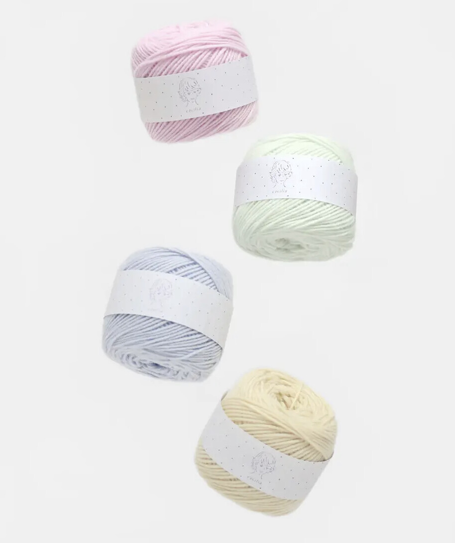 스폰지쉬한 울 100%에 가볍고 무늬 표현이 잘 되는 실이에요.