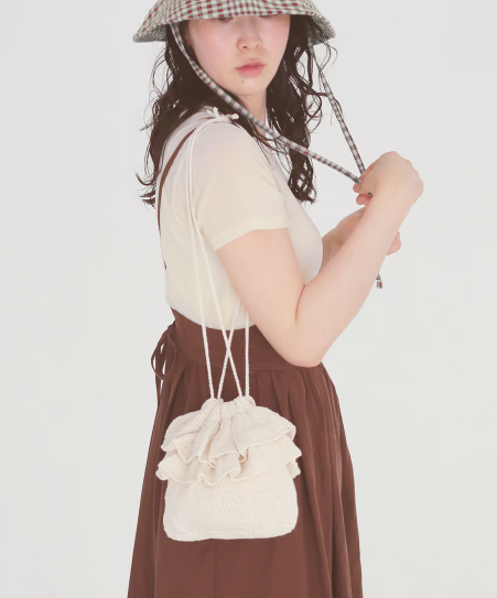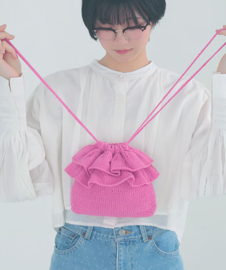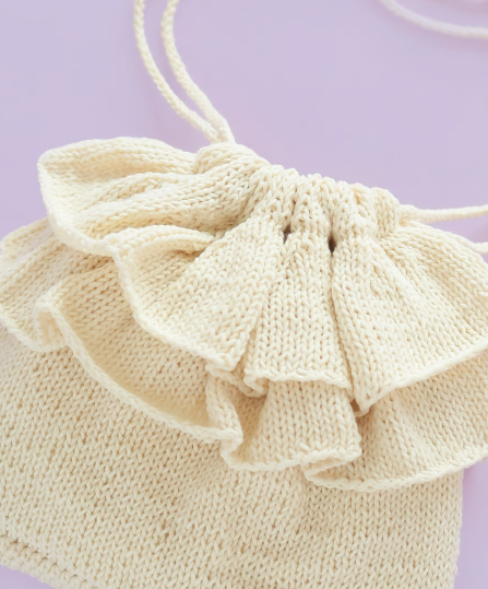 대바늘 뜨개질 가방으로 이중 프릴이 귀여운 포인트!
