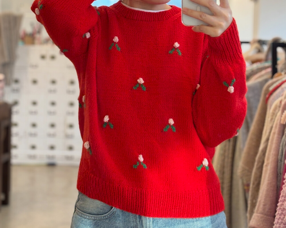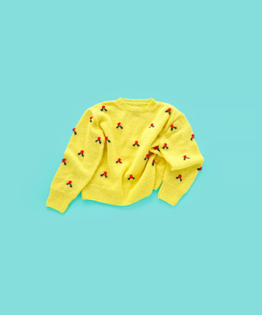 구슬뜨기와 배색으로 들판에 흩뿌린 느낌을 연출한 풀오버입니다.